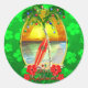 Mele Kalikimaka, hawaiianisch für frohe Weihnachten. Strandkunst mit einer Palme, die mit Weihnachtsbeleuchtung und Ziergegenständen geschmückt ist.