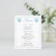 Fügen Sie Ihrer Hochzeitsfeier Eleganz in der Küste hinzu. Dieses Menü mit Strandthemen wurde mit weichen blauen Muscheln und Wasserakzenten gestaltet. Egal ob Sie ein Abendessen am Meer, einen Empfang am Meer oder eine Hochzeit in Urlaubsort veranstalten, dieses Menü Set den Ton für ein wunderschön kuratiertes Event. Passen Sie Ihre Kurse an, um ein stilvolles und koordiniertes kulinarisches Erlebnis zu schaffen, das Ihre Gäste in Liebe setzen werden.
