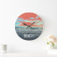 Beach Ocean Artistic Typografy Blue Sunset Orange Große Wanduhr