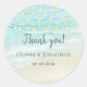 Diese einfache und elegante Hochzeit am Strand Dankeschön Sie Aufkleber sind eine perfekte Ergänzung zu Ihrer Hochzeitssuite zum Thema Strand, für die Hochzeiten an der Küste. Benutzen Sie sie für Taschen und Umschlag Aufkleber. Die Aqua Blue Ocean Beach Szene ist oben mit Lichtern aus der Saite dekoriert. Für passende Produkte, besuchen Sie die Sammlung, oder schreiben Sie mir durch Zazzle Chat.