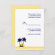Moderne RSVP Karte perfekt für eine Hochzeit am Strand. Zwei Palmen in Marineblau mit gelbem Sonnenuntergang im Hintergrund und gelben Streifen am Boden. Ideal für eine Veranstaltung zum Thema Meer, Meer oder Strand. Sauberes und elegantes Design mit zeitgemäßem Look. KONTAKTIEREN SIE MARLENEDESIGNER, WENN SIE EINE FARBE- ODER WÖRTERÄNDERUNG BENÖTIGEN