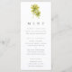 Dieses moderne, spielerische und tropische Hochzeitsmenü umfasst ein Aquarellbild mit zwei Palmen, die mit schicken Typografie gepaart sind.