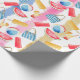Ein lustiges Strandmuster im Sommer mit Popsikeln, Wassermelone und Strandbällen.