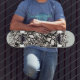 Beach Pebbles and shells drawing in black and white Skate Deck – Natural Texture, Coastal Vibes. Bring the calm, grounded beauty of the shoreline to your ride with this skate deck featuring a detailed pattern inspired by smooth beach pebbles. The design blends organic shapes and a natural rhythm that feels both rugged and serene. Perfect for skaters who love coastal aesthetics, nature‑inspired art, or unique board graphics that stand out.