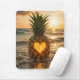 A glowing heart expertly carved into a vibrant tropical pineapple in a serene ocean water.