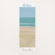 Die entspannende Strandlandschaft, das Meer mit sanften Wellen und der blaue Himmel, wird auf Yoga-Matten gedruckt. Das Wort Relax ist blau über dem Himmel gedruckt. Das Wort Breathe ist unter dem Sand in Beige gedruckt. Das Design ist beidseitig bedruckt. Vielen Dank für Ihren Einkauf bei CherylsArt auf Zazzle.
