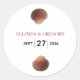 Dieses Stranddesign zeichnet sich durch zwei Muschelfarben aus. Hochzeitsdesign mit Strandedesign und Stöcken über und unter dem Hochzeitstext. Das perfekte Design für die Hochzeit in Urlaubsort am Strand, ideal für eine Hochzeit im Sommer oder eine tropische Inselhochzeit. Elegantes Hochzeitsaufkleber-Design am Strand mit modernen Elementen. Auch die passenden Hochzeitseinladungen und andere Schreibwaren sind verfügbar.