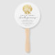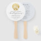 Moderne und elegante Golden Seashell Theme Beach Hochzeitsfans mit blass staubblauer Farbe auf der Rückseite, aber Sie können alle Hintergrundfarben wählen, um mit Ihrem nautischen Farbschema zu arbeiten. Raffiniert und minimalistisch für eine schicke Hochzeit an der Küste.