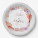 Beach Seashells Watercolor Coastal Chic Wedding Paper Teller bietet hübsche Muscheln mit Ihren personalisierten Namen und Datum in der Mitte. Ideal für Hochzeiten an der Küste und im Sommer. Personalisieren Sie den Text in den Textfeldern, indem Sie ihn bearbeiten. Entworfen für Sie von Evco Studio. Koordinationselemente anzeigen unter www.zazzle.com/store/evcostudio