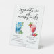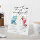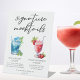 Dieses schicke Strandsignatur-Pocktails-Schild mit schwarzer Typografie über 2 Meeresgetränken und deren Zutaten für Ihr Party an der Küste. Ein niedliches Blue Hawaiian Sunrise Drink und nicht-alkoholische Strawberry Daiquiri zeichnend fügen einen coolen Flair zu Ihrem Bar Menü. Füllen Sie bitte die Namen des Paares und das Datum für seinen Empfang aus.