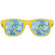 Party-Sonnenbrille: Klassische Retro-Party-Schattierungen mit dem Text "BEACH BEACH" und gelbe , die mit Meereswellen im Hintergrund gezeichnet werden - lustige Mode, Grads Beach Party, heimlicher Weihnachtsmann, Bürofeiern / Nachtausflug