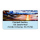 Malerei eines Strandes im Morgengrauen mit kleinen Wellen und Möwen, die im farbenprächtigen rosa und orangefarbenen Himmel fliegen.