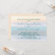 Sonnenaufgang Hochzeitseinladungen. Blau-grüne Schriftart mit Namen in handgeschriebenen Skripten. Ein heller Hintergrund von Wellen brechen und goldener Himmel, wenn die Sonne aufgeht. Vollständige Namen der Braut und des Bräutigams sind in lässigem, handgeschriebenem Schriftart. Diese Einladung ist perfekt für eine kleine, intime Zeremonie am Meer oder am Meer.