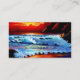 Anstrich von Wellen, die am Ufer mit einem roten und orangefarbenen Sonnenuntergang abstürzen.
