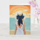 Dieses Geschirr zeigt ein Portrait einer Frau, die einen übergroßen Sonnenhut trägt und den Sonnenuntergang über dem Strand betrachtet.