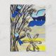 Ein originelles, gemischtes Vogeldesign, das mit Collage-, zeichn- und Maltechniken erstellt wurde. Eine großartige Postkarte für Vogelliebhaber.