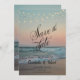 Strand mit Sonnenuntergang, Lichter mit Zeichenketten und Skript. Beautibel Save the Date, dass mit Ihrem Namen angepasst werden kann.Wählen Sie den "Anpassen"-Button, um den Schriftart Stil, Farbe und Größe zu ändern.