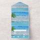 Strand, Sonnenuntergang, Palmen, Tropen, Ziel, Hawaii, Sommer All in one Einladung. Drei-fach elegante, schicke, einzigartige, moderne Einladungen für Hochzeiten. Passen Sie Ihre Daten an. Bestellen Sie rechtzeitig, um eine Enttäuschung zu vermeiden.