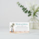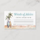 Niedliche Babyduschekarte mit Wasserfarbe, tropischer Strandlandschaft mit Palmen, Sandküsten, lebhaften aquamarinen und braunen Surfbrettern und "Words Of Advice For The Mommy-To-Be" in einer Mischung aus einer lustigen Retroblau-Schrift und einfacher Schrift.