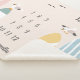 Pastellfarbene, weiche Bettdecke mit dem Thema "Strand" für Zwillinge. Minimalistisches Design mit niedlichen Möbeln und vier Surfbrettern.