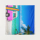 Dieses tropische Stranddesign besticht durch einen leuchtend fuchsienrosa Van und farbenfrohe Surfbretter in der Nähe von Palmen und an einem weißen Sandstrand mit türkisblauem Wasser. Das ist das perfekte Design für einen Stand in einem Party-Foto, oder für den Surfer, für das Studentenschlafzimmer, für ein Schlafzimmer, ein Büro oder jeden Raum, wo man will, die Tropen einzubringen. Design und Fotografien des Strandes und Palmen von T.K. Goforth und unterschrieben vom Künstler, alle Rechte vorbehalten.