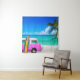 Beach Szene mit Fuchsia Pink Van und Surfboard Wandteppich