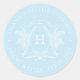 Beach Theme Light Blue Monogram Wedgetikett Runder Aufkleber