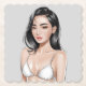 Ein atemberaubendes, weißgehäuftes Mädchen mit bezaubernder Schönheit, einem weißen Bikini und sportlichen schulterlangen Haaren.