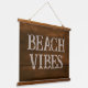 Beach Vibes Wording auf dunklen Holzkarten Wandteppich Mit Holzrahmen