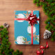 Hochwertiges Weihnachtspapier auf einer Rolle mit Seestern und Sand Dollar "Strand Kranz" Design. Hübsche, blaue Hintergrundfarbe mit Muscheln und holzbrauner, weißer und grüner Farbe bilden ein kreisförmiges Kranzmuster. Wenn Sie keine Hintergrundfarbe sehen, die Ihnen gefällt, können Sie Ihre eigene Farbe im Bereich "Weiter anpassen" auswählen.