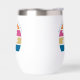 Cute custom beach wedding wine tumblers for a seaside wedding bridal party at the coast. Cool personalized favors for your bridesmaids and maid of honor featuring tropical palm tree and pretty pink and blue for a coastal event this summer.