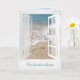 Der offene Blick auf die Strandherzen im Sand mit Namen und schaumige Ozean surfen für Hochzeiten oder Jubiläum.