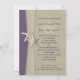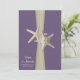 Hübsches Seestern- und Burldesign schaffen ein einzigartiges Aussehen für Ihren Strand oder Ihre Hochzeit in Urlaubsort. Elegante Lila und natürliche Elfenbeinfarben verleihen dem Ganzen ein einzigartiges Aussehen. Diese Einladung ist vollständig gedruckt. Es ist kein richtiger Einbruch oder Seestern angebracht.