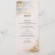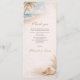 Elegant beach wedding menu template featuring soft ocean waves, palm details, and warm golden accents. Perfect for coastal, tropical, and destination weddings. Designed in a modern 4 × 9.25 format with a matching back design for a beautiful seaside reception setup.