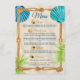Das Strandmenü mit einem Seilrahmen mit Wasserknoten, mit türkisfarbenen und goldenen Muscheln dekorierten Seilrahmen, verleiht der Hochzeit in Urlaubsort ein Party zum Empfang und besticht durch seine frischen Blätter aus Palmen über eine Sandstruktur. Ersetzen Sie den Beispieltext sowie die Platzhalterkarte auf der Rückseite durch Ihre eigene, um ein personalisiertes Design zu erzielen. Ideal für Hochzeiten am Strand, Hochzeiten in Urlaubsort, tropische Hochzeiten, Hochzeiten auf der Insel, Hochzeiten im Sommer und andere Veranstaltungen im Zusammenhang mit dem Meer. Bitte besuchen Sie die Sammlung, um die gesamte Suite zu sehen.