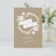 Eine Strandhochzeit Save the Date mit einer Darstellung von Blume, Blätter, Sandgeld und Seestern in Form eines Kreises mit Banner in der Mitte. Personalisieren Sie den Text.