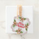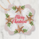 Tropisches Geschenk Tags für die Krawatte auf Geschenke. Starfish und Sand Dollars machen einen hübschen Kranz auf "Frohe Weihnachten" Liebesmarken. Die Hintergrundfarbe ist hellrosa Sand mit rotem Text in der Mitte. Umgekehrt ist rot und leer. Diese Form ist ein Beispiel und kann geändert werden.
