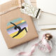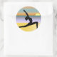 © Sunny Mars Designs - Beach Yoga Warrior Pose Anpassbare Round Adhesive Stickers - Coole, lebendige, eigenständige Yoga Strand Yoga angepasste runde Aufkleber mit einer schwarzen Silhouette einer Frau, die Yoga am Strand mit der Sonne im Hintergrund praktiziert. Konzept für Gesundheit, Fitness, Frieden und Ruhe. Ideal für Yogis, Yogalehrer, Yogalehrer, Yogalehrer oder Yogastudenten. Sie können es personalisieren, indem Sie Ihren eigenen Namen oder Ihre eigenen Details Ihres Yoga-Studios oder Yogakurse hinzufügen.