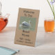 Fügen Sie Ihrem Strandhaus einen besonderen Empfang mit diesem stehenden Schild mit einem pelikanischen Foto hinzu. Dieser schöne große Vogel schwimmt auf dem Wasser und entspannt sich. Eine Begrüßungsnachricht sowie der einfache Zugriff auf Ihren WiFi-Code und die Notrufnummer können an jeder Stelle auf Ihrer Zuhause Set sein. Der braune Hintergrund und der gesamte Text lassen sich einfach anpassen. Original Foto - C. McGouldrick