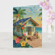 A pretty impasto beach themed birthday card with a cute beach house, palm trees and tropical flowers. Inside is a sweet poem with a tropical theme.