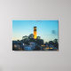 A glowing coastal beacon rises above the bay in this striking twilight canvas print. Perfect for ocean lovers and California coastal decor.
