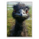 Vollfarbiges fotografisches Bild einer WWU, oder großer Straußenartiger Vogel, mit Details, die Federn und Absturz zeigen, und ihre beattigen braunen Augen konzentrieren sich auf seine Beute - den Fotografen!