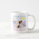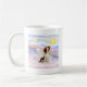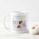 Ein Beagle probiert seine Flügel unter den flauschigen Wolken des Himmels aus, bevor er frei in die Regenbogenbrücke eintritt, wo Engel und Freunde warten.l