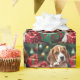 Beagle beim Einpacken von Weihnachtsgeschenken Mal Geschenkpapier