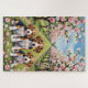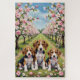 Eine fröhliche Beagle-Familienszene in einem blühenden Apfelhain. Mit einem glücklichen erwachsenen Hund und zwei niedlichen Welpen zeigt dieses Kunstwerk die Schönheit des Frühlings, Wärme und Charme – perfekt für Hunde-Liebhaber und naturinspirierte Dekoration.