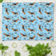 Gestaltungsmerkmale: Illustrierte Beagle in einem sich wiederholenden Muster mit weißen Pfotendrucken und Hundeknochen auf blauem Hintergrund.