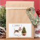 Ein niedlicher Beagle trägt ein Weihnachtskleid humorvoll. Mit Blick auf einen Baum verließ er kalte Pfoten. "Paws" und schicken lustige Weihnachtsgeschenke.
