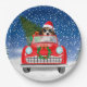 Beagle Hund Autofahren im Schnee Weihnachten Pappteller