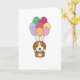 Beagle Hund fliegt mit farbenfrohen Balloons Karte