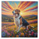 Beagle-Hund, sitzend auf einer Blumenwiese. Viele Haustier- und Landschaftsdesigns in meinen Geschäften. Puzzles, Planer, Notizbücher, Fliesen, Ornamente und mehr mit diesem Design in meinen Geschäften. Dieses Design zu anderen Produkten hinzufügen. Text hinzufügen.